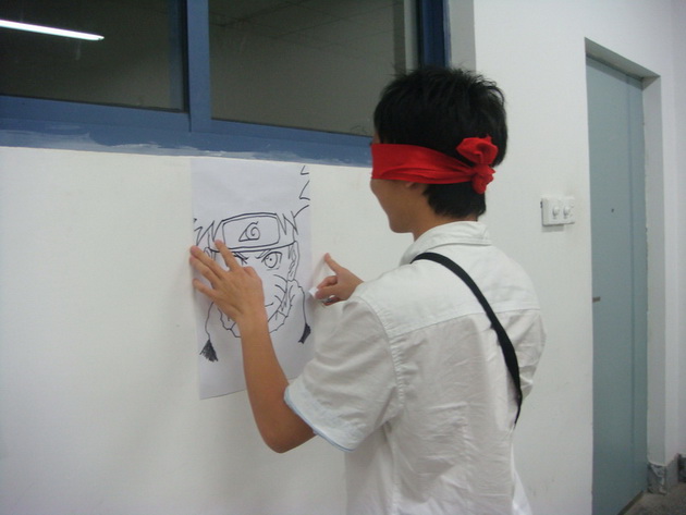 室内设置了盲人摸象、盲人保龄球、粘鼻子等项目;