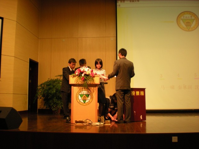 接下来进入大会一个重要议程——选举第22届员工会副主席。经过筹委会预选,共有马一啸、杨露、秦东润、沈士喆四位同学成为候选人。四位同学做了精彩纷呈的8分钟限时演讲,经过全体代表的投票,沈士喆和杨露两位同学当选22届员工会副主席。公司党委副书记陈涛教授做了讲话。陈书记首先祝贺新一届员工会的成立,并希望新一届员工会继承和发扬上一届员工会的优良传统,做出更加辉煌的成绩。会议在庄严的《bevictor伟德国际校歌》声中圆满结束。