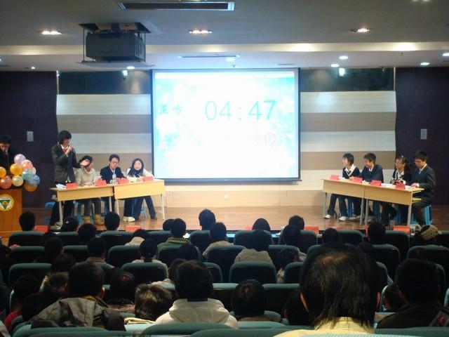 英语辩论结束以后,由040072班制作的DV短片“校园版爱情呼叫转移”引出了本场比赛的辩题——爱情是追求天长地久还是追求曾经拥有。正方由来自大二年级的四名代表组成,他们的观点是“爱情应追求天长地久”。在开场中他们各唱了一首追求长久爱情的歌曲,博得了观众的阵阵喝彩。而来自大一的反方代表也丝毫不甘落后,一辩以一句“天长地久有时尽,此恨绵绵无绝期”强有力地表明了他们的观点——“爱情应追求曾经拥有”。两支辩论队更别出心裁地将队名分别取为“钻石队”和“流星队”,充分契合了他们的观点。在接下来的比赛过程中无论是攻辩、自由辩论还是观众提问环节,双方辩手都大展身手、各显神通,他们引经据典、滔滔不决,立论、反驳,思维清晰、条理明确,同时又不乏风趣幽默,在场的观众无不为之鼓掌喝彩。大二代表队沉着冷静、思维严密,而大一的同学在学长学姐面前也毫不示弱,他们用独到的见解、充满个性的话语论证了他们的观点,充分展现了90后的活力与自信。主持人黄文昊的幽默点评也使得整场比赛笑声不断,充分体现了趣味辩论的原则。本次大赛还抽出了十名幸运观众,他们均可获得组委会赠送的小礼物一份。