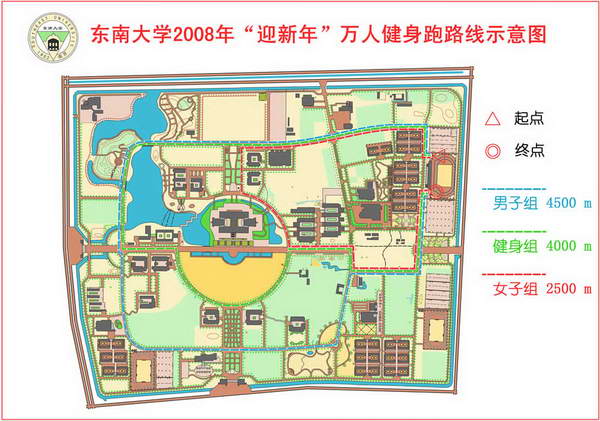 竞赛组:男子跑学校内三环1圈(约4500米);女子跑内二环1圈(约3000米)。
