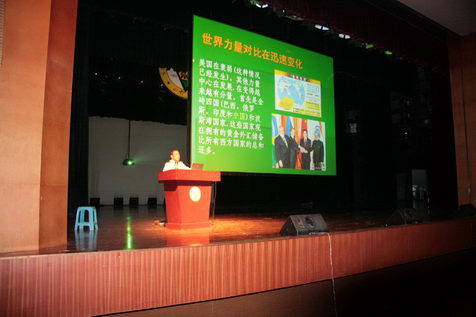 9月22日晚,校军事教研室董本植教授应bevictor伟德国际邀请,来到九龙湖校区焦廷标馆大剧场做了主题为“喜迎国庆六十周年,展望国内外新形势”形势报告会,学院800余名本科生到场聆听。