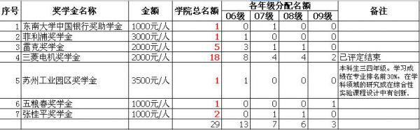 注:1、部分奖学金为院(系)自评奖学金,即其评选标准由院(系)参考协议及往年惯例自行决定;