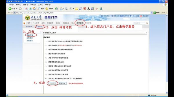 1、进入信息门户后点击教学服务;2、点击体育考核;3、点击理论考试;4、点击开始考试。